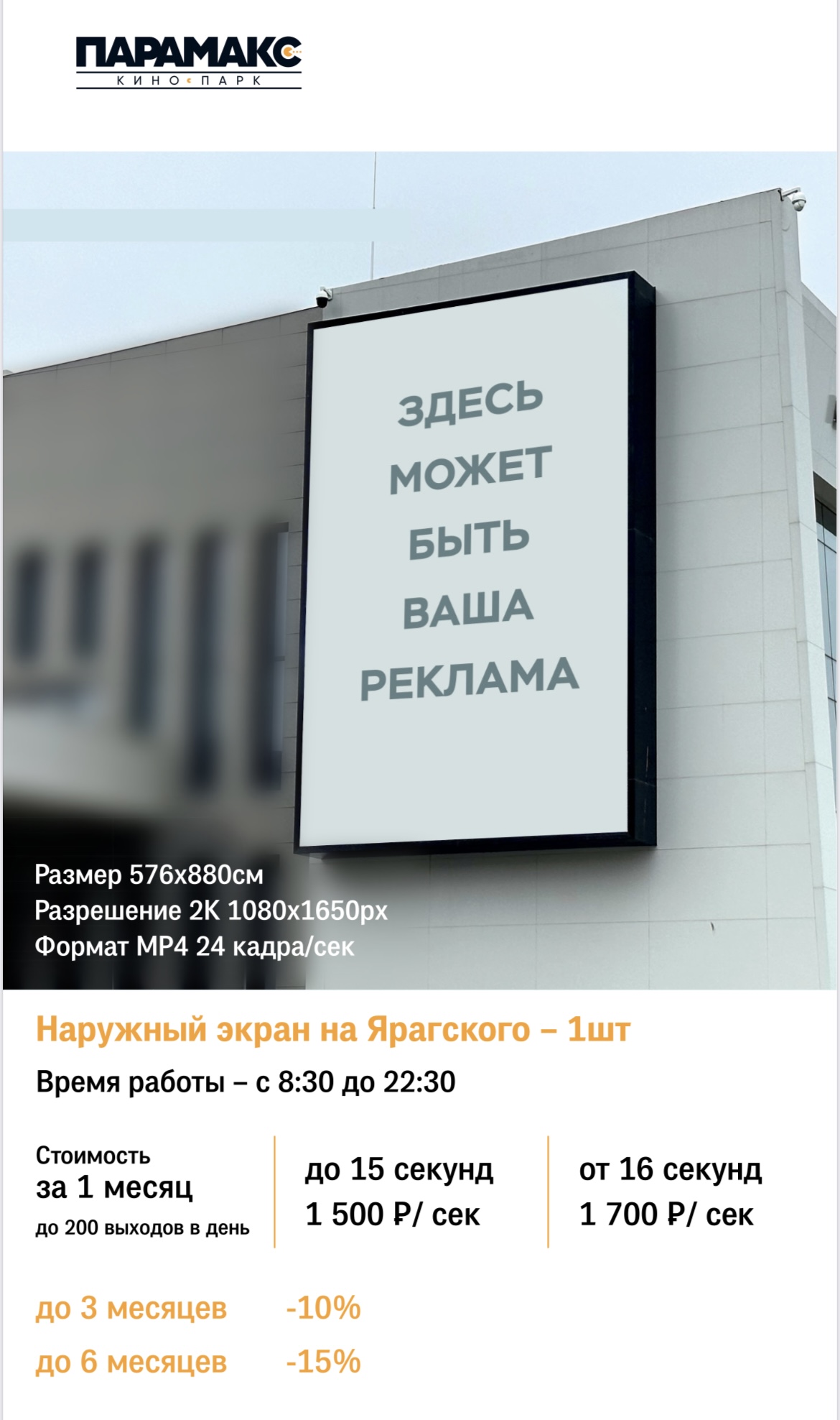 Экран на фасаде + экраны в зоне кассы Парамакса